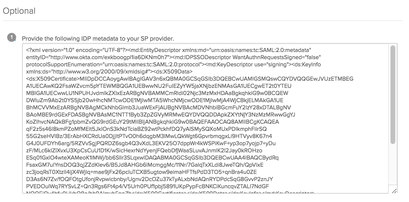 In the Optional section, copy the contents of IDP metadata and save to file. For example, under /Users/armory/.hal/saml/metadata.xml.