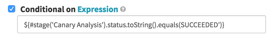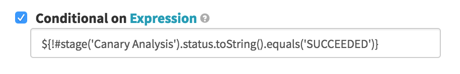 The first of two options after the Canary Analysis, we run this conditional on the Canary Analysis stage being in any state other than