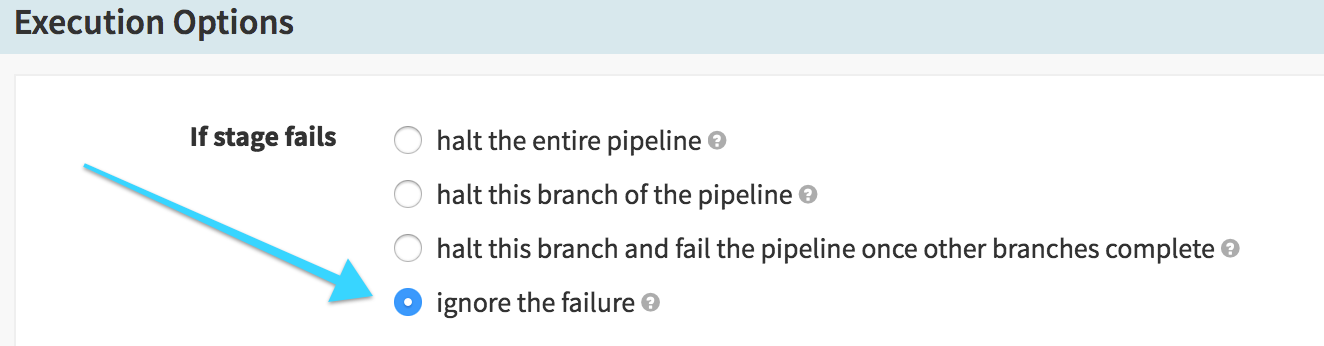 We also need to be sure that we don’t stop the pipeline execution if the canary fails – we want to be able to “clean up” after a failure, so we don’t keep the bad canary alive longer than we need to: